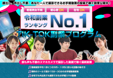 という特徴を持ったお手軽動画の投稿で稼ぐTIKTOK攻略法です。
